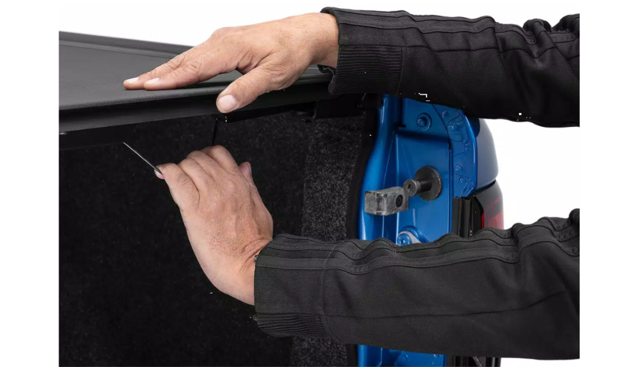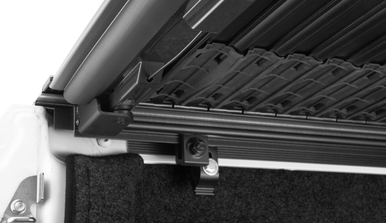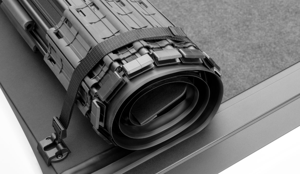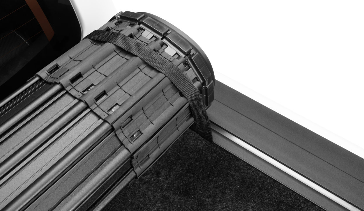 Le guide di bloccaggio girevoli brevettate e un meccanismo di chiusura facile da usare garantiscono un funzionamento intuitivo che consente un semplice utilizzo con una sola mano da entrambi i lati del portellone posteriore. Questa nuova struttura di chiusura garantisce inoltre la massima sicurezza e impedisce ai ladri di sollevare i lati della copertura, tagliare la copertura in alluminio o accedere al meccanismo di chiusura quando il portellone posteriore è chiuso.